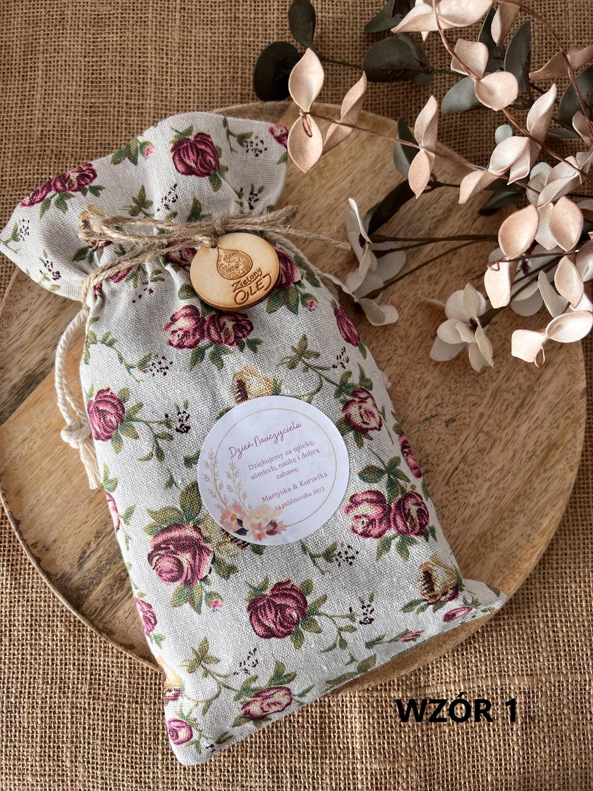 Cena zawiera: worek lniany/ jutowy + wypełnienie wełna drzewna + sznurek/ wstążka ozdobna + etykietka z własnym tekstem 🙂
